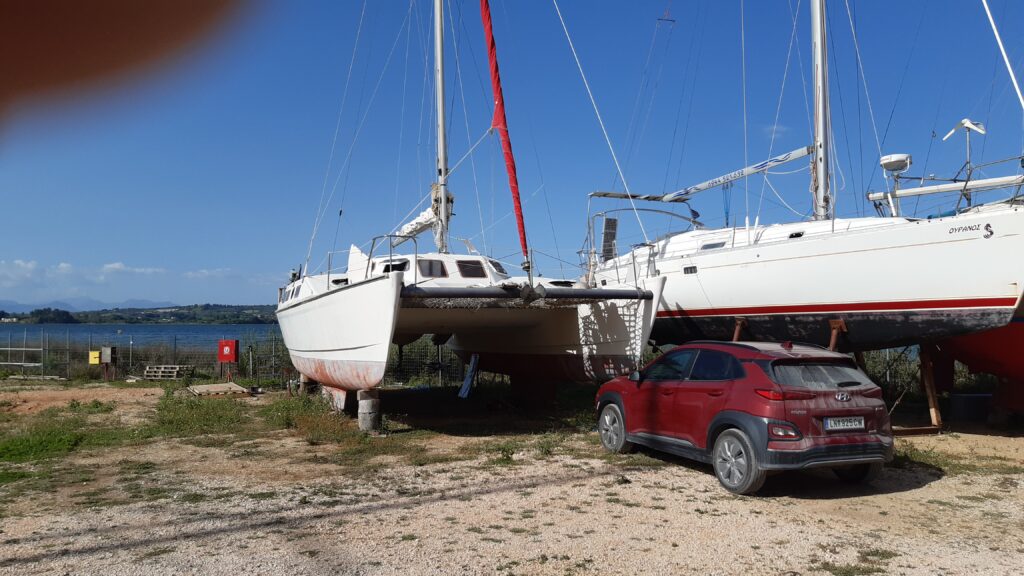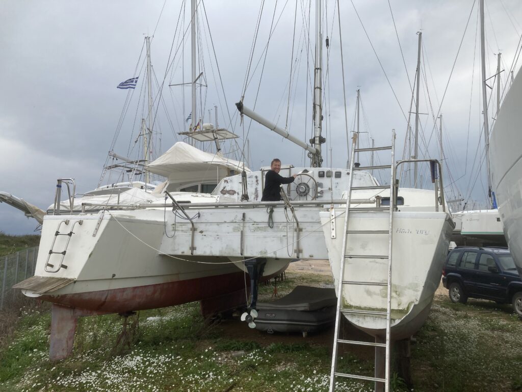 In Preveza stand Berenike, ein 1988er Segel-Katamaran, entworfen vom Engländer Richard Woods, Typ Mira mit 35 Fuss, in einem üblen Zustand.