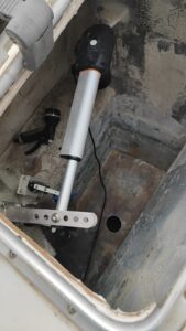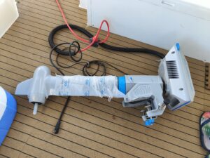 The rudders are moved by two linear actuators, either manually using a small joystick or, as is usually the case, via autopilot with radio remote control.